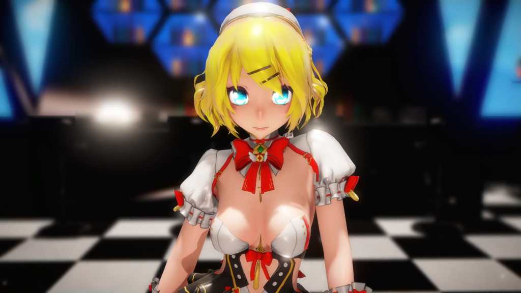Sour式の「鏡音リン」はらしさが全開に出た“KAWAII”って言葉がピッタリのビジュアルなんだけど、それに対して000MMDさんが使用しているモデル(すまん、このモデルの名前は知らない)は“セクシー”で“スケベ”って感じがして、いや、それはそれで良いんだけど、でも俺、そろそろ“KAWAII”ほうも見たいナ…って思ってるんだ。要はマンネリってやつなの。