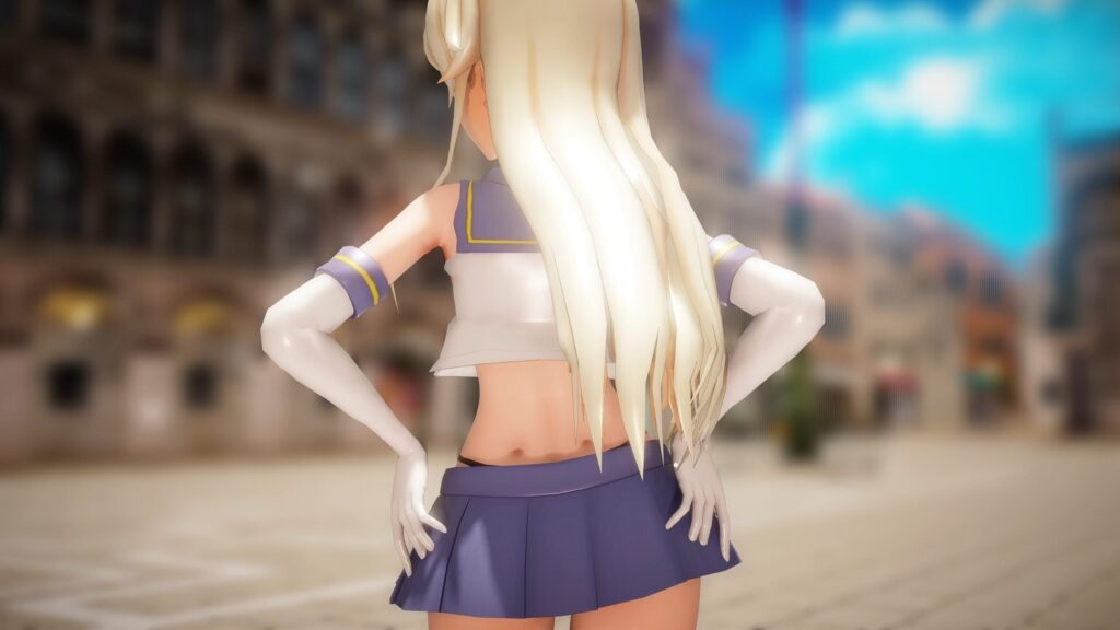 本当はラスサビの“ここ”でもおまんこ触ってほしかったな…。触らせる余地はある格好だと思うんだけど……まあそこは000MMDさんの匙加減よね……。